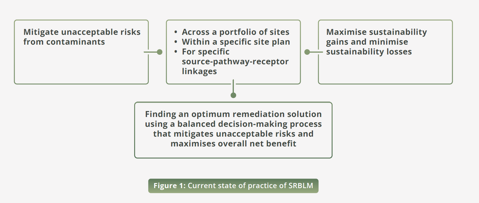 The international consensus that has emerged over the past 20-30 years is that decisions regarding contaminated sites should be made based on understanding and managing risks to human health and the wider environment, taking into account the current or planned use of the land. More recently there has been a growing emphasis that risk management should also align with sustainable development principles. This integrated approach is known as sustainable and risk-based land management (SRBLM), see Figure 1, and is increasingly recognised in international practice, policy, and regulation.